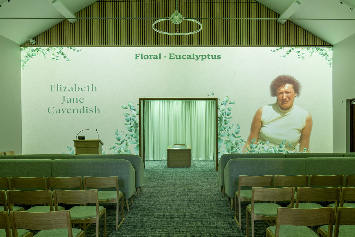 Where other UK venues can only provide visual tributes and photos of a loved one on chapel screens, our canvas wall serves as the entire visual tribute backdrop for a service.